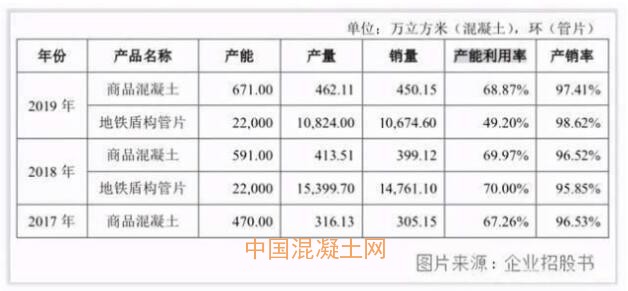 我們還注意到,港創(chuàng)建材報(bào)告期內(nèi)產(chǎn)能利用率嚴(yán)重不飽和。2017年—2019年,公司商品混凝土產(chǎn)能利用率分別為67.26%、69.97%、68.87%,地鐵盾構(gòu)管片的產(chǎn)能利用率為61.22%、70%、49.2%。
