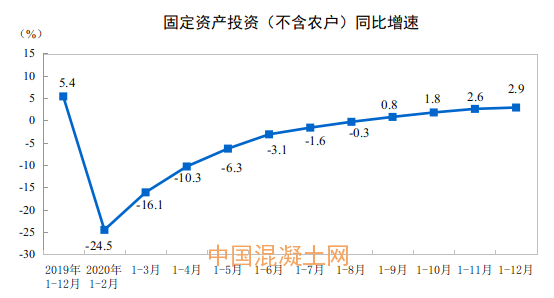 2020年1—12月份,全國(guó)固定資產(chǎn)投資(不含農(nóng)戶)518907億元,比上年增長(zhǎng)2.9%,增速比1—11月份提高0.3個(gè)百分點(diǎn)。其中,民間固定資產(chǎn)投資289264億元,增長(zhǎng)1.0%,增速提高0.8個(gè)百分點(diǎn)。從環(huán)比速度看,12月份固定資產(chǎn)投資(不含農(nóng)戶)增長(zhǎng)2.32%。