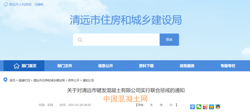 關(guān)于對清遠市鍵發(fā)混凝土有限公司實行聯(lián)合懲戒的通知
