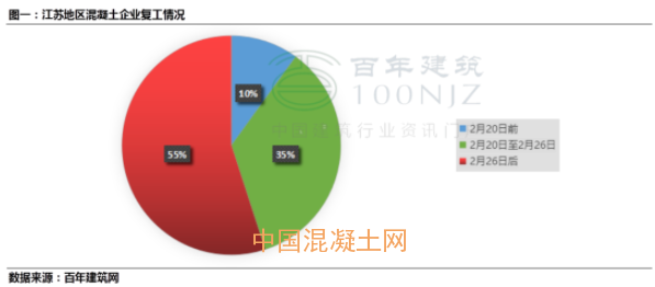 截至2月20日,選取江蘇地區(qū)100余家混凝土企業(yè)作為樣本進行開(復)工調(diào)研。據(jù)調(diào)研顯示,10家混凝土企業(yè)已在2月20日前復工,35家混凝土企業(yè)將在2月20日至2月26日復工,55家混凝土企業(yè)計劃在2月26日之后復工。正月十五以后,江蘇地區(qū)半數(shù)混凝土企業(yè)將正常復工,但是攪拌站整體出貨量較少,產(chǎn)銷情況不多。春節(jié)假期之后,多數(shù)施工企業(yè)尚未復工,且勞務人員到位情況一般,江蘇地區(qū)混凝土市場需求量不佳,預計正月十五之后,上下游企業(yè)將會全面實現(xiàn)復工復產(chǎn)。