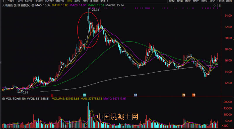 值得注意的是,去年8月7日,天山股份曾披露了公司重大資產重組預案公告,公司擬向中國建材等交易對方發行股份購買中聯水泥、南方水泥、西南水泥和中材水泥的全部或部分股權。受此影響,天山股份拿下3個漲停板,股價也一度摸高25元上方。