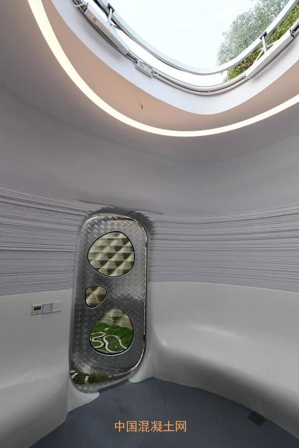 據(jù)了解,書屋內(nèi)部面積大概不到30平方米,可以容納15個(gè)人在里面活動(dòng)。書屋用的混凝土沒有鋼筋,加入了纖維作為抗拉材料,性能和普通混凝土差不多甚至更好,也防震。書屋“外殼”有兩種不同的紋理。一種是正常的打印肌理,形成一層一層的紋路;另一種是門口體現(xiàn)凹凸變化的肌理,由設(shè)計(jì)團(tuán)隊(duì)精心設(shè)計(jì),這些造型全都在電腦內(nèi)設(shè)計(jì)好,并轉(zhuǎn)換成代碼,用機(jī)械臂打印出來。