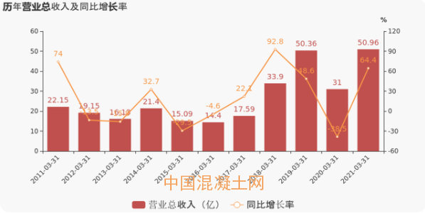 21年一季度公司實現(xiàn)營業(yè)總收入51億,同比增長64.4%;歸母凈利潤-5148.6萬,上年同期為-2.8億,虧損幅度收窄。