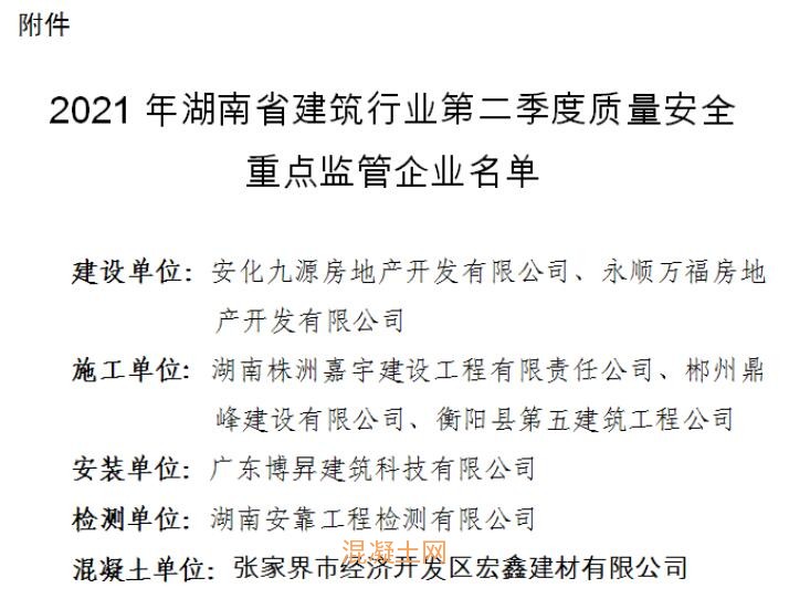 值得關注的是,安化九源房地產開發有限公司、永順萬福房地產開發有限公司、湖南株洲嘉宇建設工程有限責任公司、郴州鼎峰建設有限公司、衡陽縣第五建筑工程公司、廣東博昇建筑科技有限公司、湖南安靠工程檢測有限公司、張家界市經濟開發區宏鑫建材有限公司等8家公司被列入2021年湖南省建筑行業第二季度質量安全重點監管企業名單。