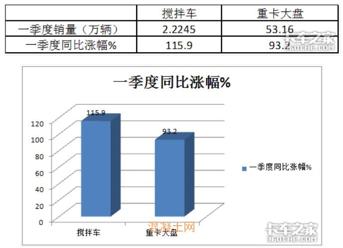 混凝土攪拌運輸車(下簡稱攪拌車),是主要用來運送建筑用預拌混凝土的專用卡車,是重卡領域中不大的一個細分市場,由汽車底盤和混凝土攪拌運輸專用裝置組成。從目標用途看,攪拌車目前廣泛應用于工程建設及房地產市場,其所處領域屬于投資拉動行業。伴隨著基礎設施建設的持續拉動及房地產投資的增長,今年一季度攪拌車市場呈現出迅猛的發展態勢。