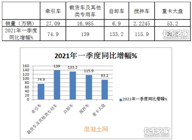 二、2021年一季度攪拌車市場跑贏重卡大盤,為一季度重卡市場的增長起到了積極的推動作用