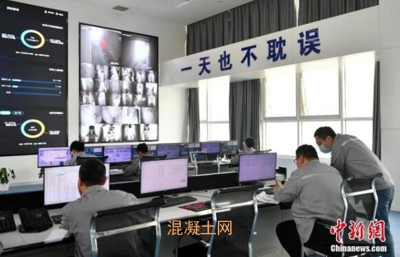 圖為雄安新區(qū)容西混凝土攪拌站控制中心技術人員正在對廠區(qū)內(nèi)生產(chǎn)活動進行控制