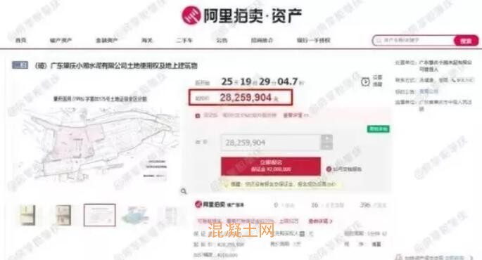 今年5月初阿里司法拍賣(mài)平臺(tái)掛出了肇慶小湘水泥有限公司的拍賣(mài)公告。起拍價(jià)2825.9904萬(wàn)元。