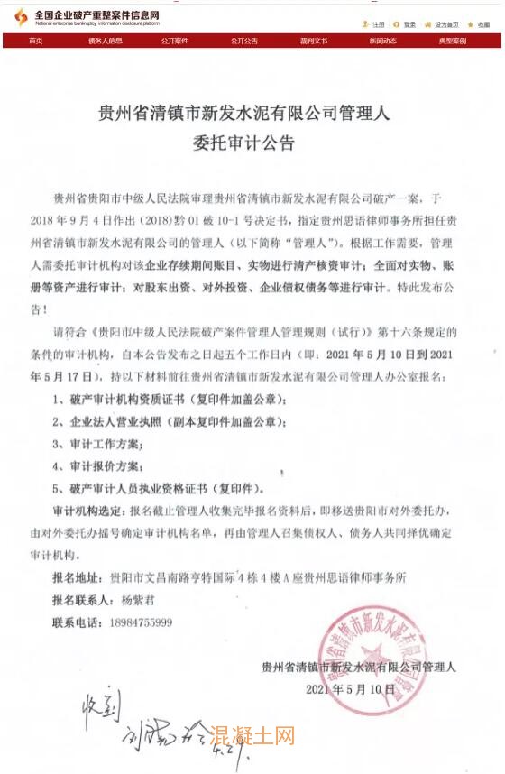 貴州省清鎮(zhèn)市新發(fā)水泥有限公司管理人委托審計(jì)公告提到,指定貴州思語(yǔ)律師事務(wù)所擔(dān)任貴州省清鎮(zhèn)市新發(fā)水泥有限公司的管理人。根據(jù)工作需要,管理人需委托審計(jì)機(jī)構(gòu)對(duì)企業(yè)存續(xù)期間賬目,清產(chǎn)核資審計(jì)。全面對(duì)實(shí)物、賬冊(cè)等資產(chǎn)進(jìn)行審計(jì);對(duì)股東出資、對(duì)外投資、企業(yè)債權(quán)債務(wù)等進(jìn)行審計(jì)。
