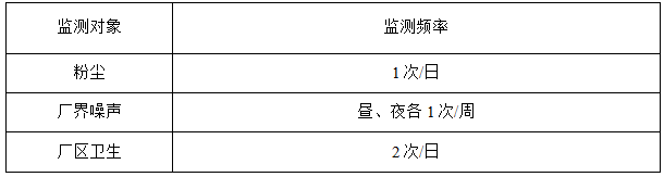 9.0.4粉塵、廠界噪聲、廠區衛生監測頻率應符合表9.0.4的規定。監測應有記錄。