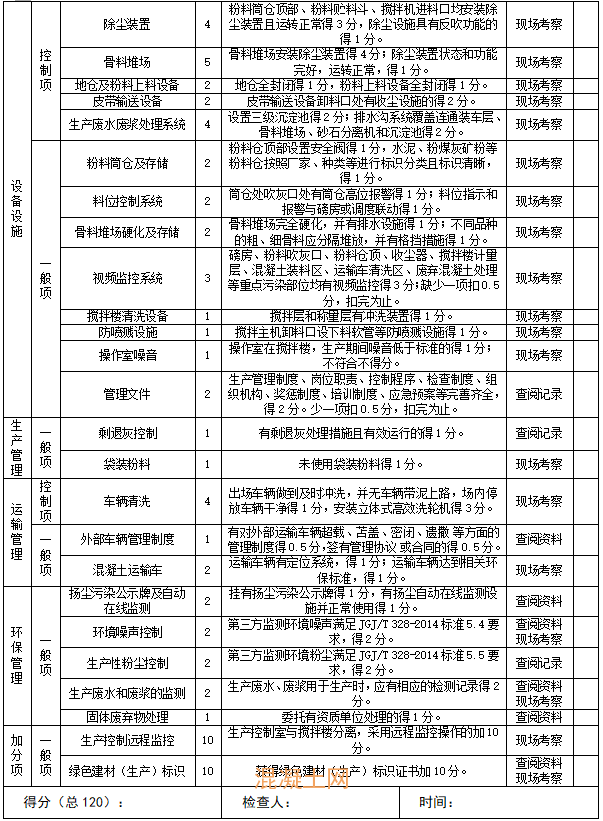 3.0.5新建混凝土攪拌站應按本標準有關規定進行建設和驗收,并定期按附錄A評分表進行檢查,檢查得分不應低于90分且控制項 不應扣分。