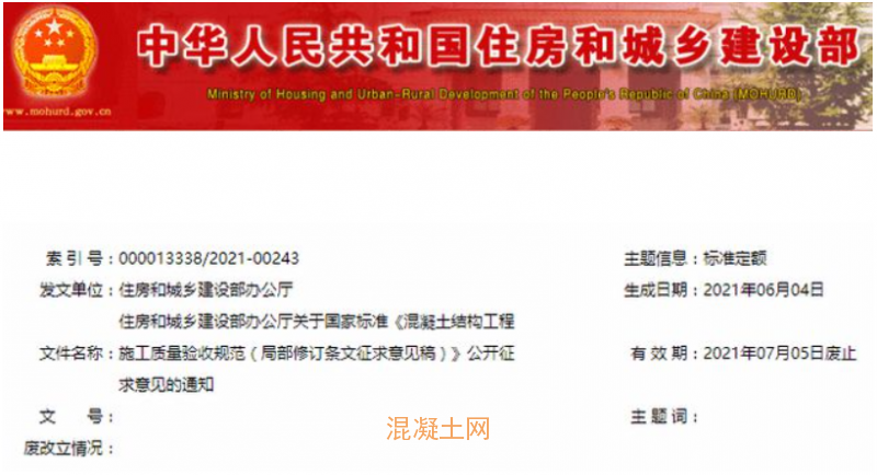 近日,住建部發布了混凝土結構工程施工質量驗收規范(局部修訂條文征求意見稿)。