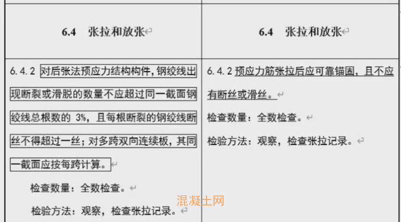 2、鋼筋分項:取消HRB335鋼筋驗收要求,最大總伸長率改為最大力總延長率,鋼筋重量偏差作了細微修正。