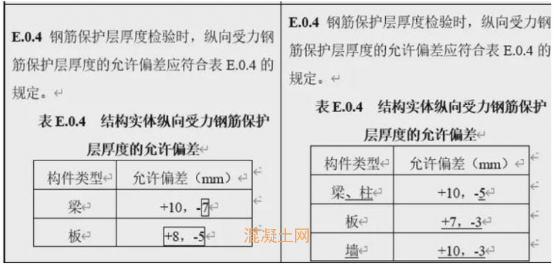 本次50204修規對于施工單位來說,要求更高了,如結構實體檢測,特別要提醒的是鋼筋保護層厚度要求,增加了墻、柱體鋼筋保護層厚度檢測項,鋼筋保護層允許偏差值比原基礎更嚴格。