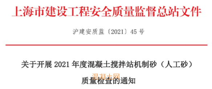 為貫徹落實上海市市委、市政府的精神,防范工程質量事故發生,保障人民群眾生命財產安全,針對目前本市機制砂的來源不穩定,質量控制薄弱的情況,上海市建設工程安全質量監督總站決定于8月中旬開始對本市混凝土攪拌站建筑用機制砂進行監督抽查。現將相關安排要求和事宜通知如下: