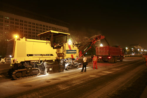 為迎接新中國建國60周年慶典活動進(jìn)入倒計時,北京長安街26.7公里的大修主體工程正如火如荼進(jìn)行。連續(xù)半個多月以來,兩臺三一SM2000C銑刨機在這里進(jìn)行路面施工,這也是國產(chǎn)設(shè)備首次參加這一重點形象工程施工。