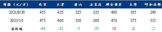 加之京津冀地區正在籌備2022年北京冬奧會,環保管控會持續到次年3月份冬奧會結束,砂石等原料成本持續高位,且當地的混凝土生產受限制,因此價格上漲的趨勢為主。