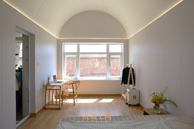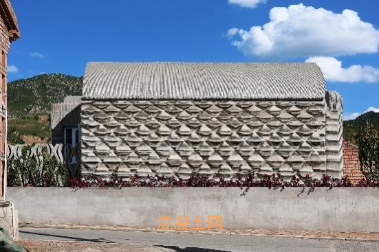 該農宅的打印施工,使用了3套機器臂3D打印混凝土移動平臺,分別放置在3大開間中央,直接進行基礎及墻體的原位打印,同時在建筑室外的機器臂軌道兩側,現場預制打印了所有筒拱屋頂,并用吊機將筒拱屋頂裝配到打印的墻體上面。建筑的外墻采用了編織紋理作為裝飾,它與結構墻體一體化打印而成,墻體中央灌注保溫材料,形成裝飾、結構、保溫一體化的外墻體系。