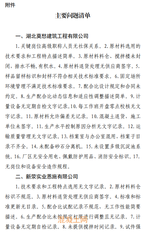 (一)督促問題整改。本次巡查結束后,各級住建主管部門要嚴格對照檢查組反饋的問題清單責令限期整改到位;對附件所列主要問題清單企業加強重點監管,督促問題隱患在規定時間內整改到位;對拒不接受整改或整改不到位的企業依法依規進行懲處,并將處理結果于12月14日前報湖北省散裝水泥辦公室。各地要以此次檢查為契機,對檢查中發現的主要問題要追根溯源,舉一反三,迅速開展回頭看工作。