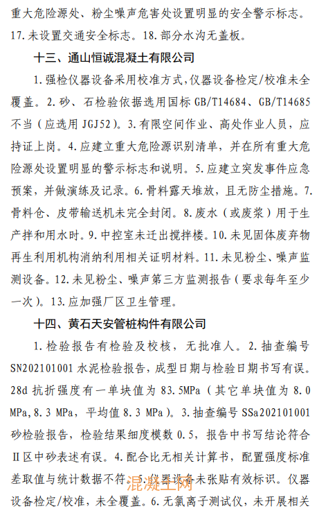 關于2021年全省預拌混凝土(砂漿)企業日常管理及綠色生產巡查情況的通報