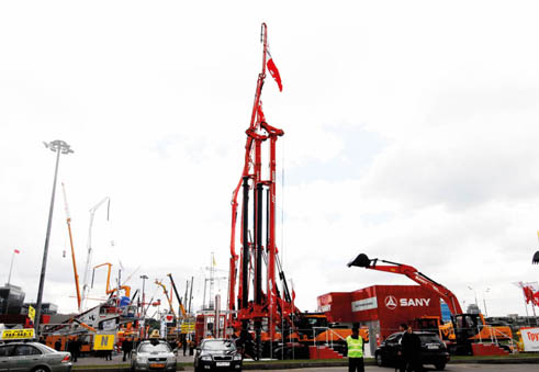 本次展會三一的展臺面積接近1000平米,共展出包括泵車、拖泵、壓路機、挖掘機和旋挖鉆等8臺全新產品。值得推薦的是,為了滿足俄羅斯客戶的需求,三一推出了新型SRT150搓管機。該設備地質適應性強,能在堅硬地層下套管,具有成樁質量高、噪音低、節能環保等特點。SRT150搓管機可以直接與旋挖鉆機連接使用,完全適應世界主流的全護管下樁工法。