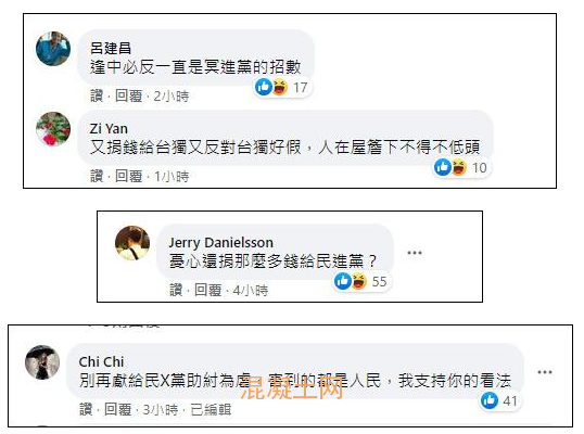也有網(wǎng)民表示,給民進(jìn)黨捐錢,害得“都是臺灣人民”