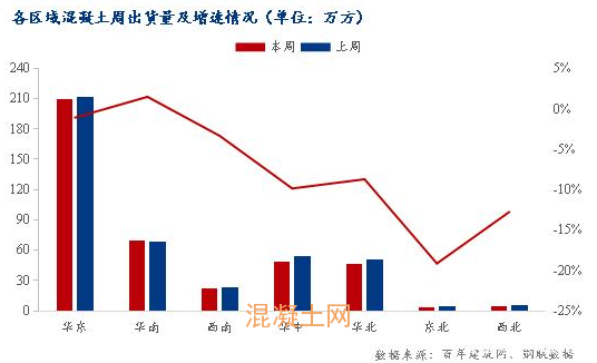 本周所調(diào)研的混凝土周出貨量為404.89萬方,環(huán)比減少13.22萬方,混凝土出貨量跌幅持續(xù)增加。目前華南地區(qū)產(chǎn)能利用率有所上升,其他區(qū)域均有不同程度的降低,東北、西北、華北地區(qū)受資金緊缺以及需求降低的影響,出貨量下降明顯。其中降幅最大的是東北地區(qū),出貨量減少19%,寒潮天氣影響市場(chǎng)需求幾乎停滯,下游施工受阻,部分施工企業(yè)規(guī)避冬施費(fèi),混凝土市場(chǎng)需求和供給銳減;其次西北地區(qū)目前房地產(chǎn)資金難有回流,加之環(huán)保管控等因素疊加,出貨量減少13%;華北地區(qū)本周產(chǎn)量減少了9%,混凝土企業(yè)回款方面未有改善,部分重點(diǎn)工程對(duì)于混凝土采購(gòu)量具有一定支撐作用,加之多地出現(xiàn)空氣重度污染的情況,環(huán)保管控持續(xù)加嚴(yán),混凝土出貨量逐漸減少;華中大部分地區(qū)出現(xiàn)中度或者重度污染,已啟動(dòng)重污染天氣橙色預(yù)警,多數(shù)工地施工進(jìn)度放緩,混凝土需求有所減少;華東和西南地區(qū)小部分混凝土企業(yè)已處于半停工狀態(tài),新開項(xiàng)目較少,后期工程進(jìn)度也不會(huì)有較大回升,出貨量暫且穩(wěn)定。僅有華南地區(qū)小幅增長(zhǎng)了1%,目前部分混凝土企業(yè)已處于半停工狀態(tài),企業(yè)重心移至回款,新項(xiàng)目方面混凝土企業(yè)市場(chǎng)競(jìng)爭(zhēng)壓力不減。