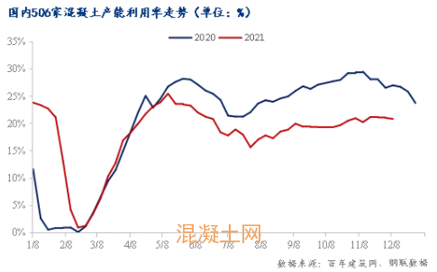 樣本說明:本輪調研時間為12.23-12.29日,樣本總量為506個混凝土攪拌站,地區占比:華東23.28%、華中16.43%、華南17.12%、華北21.23%、西南15.1%、西北2.7%、東北4.14%;產能利用率=周產量/周設計產能;混凝土企業正常平均產能利用率維持在30%左右。