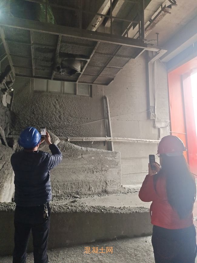 ▲專家在檢查混凝土卸料口