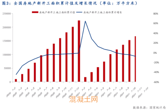 1-12月全國(guó)房地產(chǎn)開發(fā)投資147602億元,同比增長(zhǎng)4.4%,比2019年1-11月份增長(zhǎng)11.7%,兩年平均增長(zhǎng)5.7%,1-12月投資累計(jì)增速為4.4%,較11月下滑1.6個(gè)百分點(diǎn),整體下滑幅度擴(kuò)大。可以看到,下半年房地產(chǎn)行業(yè)風(fēng)險(xiǎn)暴露后,房地產(chǎn)投資趨于弱化,房地產(chǎn)市場(chǎng)下行壓力有所增加,前期依靠高負(fù)債盲目擴(kuò)張的房地產(chǎn)企業(yè)債務(wù)風(fēng)險(xiǎn)持續(xù)上升,多處項(xiàng)目工地進(jìn)度放緩;11月竣工面積也出現(xiàn)了同比負(fù)增長(zhǎng),以往高竣工對(duì)投資的支撐效應(yīng)明顯減弱。11月樓市市場(chǎng)繼續(xù)降溫,當(dāng)月房產(chǎn)銷售面積和銷售額同比增速均處于負(fù)增長(zhǎng),自6月份開始,已經(jīng)連續(xù)四個(gè)月處于負(fù)增趨勢(shì),房地產(chǎn)行業(yè)管控政策不斷,加之房地產(chǎn)稅的試行,都是給樓市方向潑了一把冷水。另一方面,房地產(chǎn)行業(yè)融資環(huán)境仍然趨緊,行業(yè)資金面流動(dòng)性緊張,房建項(xiàng)目投資熱情下滑,四季度房地產(chǎn)投資增速大概率會(huì)延續(xù)下行態(tài)勢(shì)。房地產(chǎn)行業(yè)對(duì)混凝土需求的拉動(dòng)比較顯著,如果投向房地產(chǎn)行業(yè)的資金減少,新開項(xiàng)目工程不足,混凝土企業(yè)出貨量持續(xù)下滑、在手訂單嚴(yán)重不足、資金回款難得問題會(huì)更為突出。