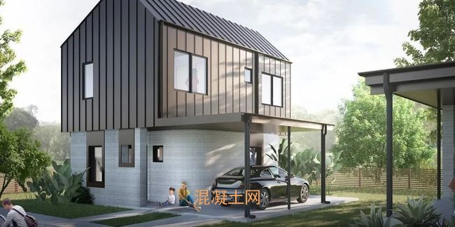 LoganArchitecture 為開發(fā)商 3Strands 使用 Icon 的 Vulcan 建筑系統(tǒng)設(shè)計的 3D 打印房屋的渲染圖(來源:Icon)