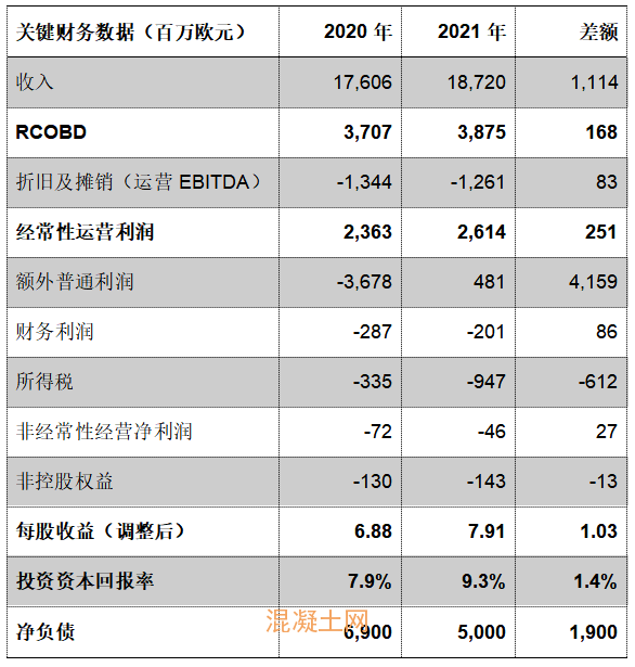 2021年,海德堡水泥業績良好,財務狀況有所改善。