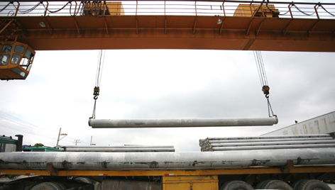 圖為管樁正在裝車外運
