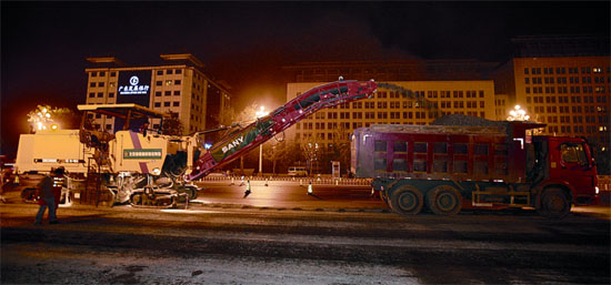 SM2000C型銑刨機裝機功率大,高達492kw;質量大,操作重量達35.7t;銑深大,銑刨深度達32cm,可一次性銑刨完成面層、結構層、基層。這一大功率、大質量、大銑深的“三大”特色在長安街大修工程中得到了充分印證。從4-6公分的淺層銑刨到30多公分的深層銑刨,SM2000C型銑刨機均游刃有余。