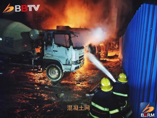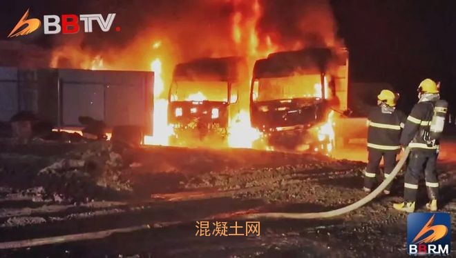 4月5日凌晨1點多,廣西玉林博白縣龍?zhí)舵?zhèn)茅坡村木棉角隊一攪拌站多臺大車起火。