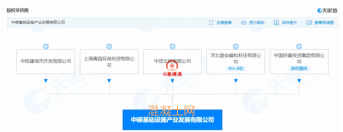 通過上圖可以看到,中碳基礎(chǔ)設(shè)施產(chǎn)業(yè)發(fā)展有限公司由中國鐵建投資集團(tuán)有限公司控股,中鐵建城市開發(fā)有限公司、中信云網(wǎng)有限公司、上海青園環(huán)保投資有限公司、河北雄安峰合科技有限公司參股,注冊資金1.5億元,中國鐵建整體控股70%。企業(yè)經(jīng)營范圍包含碳基建、碳減排、碳轉(zhuǎn)化、碳捕捉、碳封存技術(shù)研發(fā),碳資產(chǎn)管理,資源再生利用技術(shù)研發(fā),信息技術(shù)咨詢服務(wù),數(shù)據(jù)服務(wù),節(jié)能管理服務(wù)等。中碳基礎(chǔ)設(shè)施產(chǎn)業(yè)發(fā)展有限公司的成立,是中國鐵建投資集團(tuán)為搶灘布局雙碳業(yè)務(wù)市場,積極推進(jìn)碳基建、碳相關(guān)技術(shù)研發(fā)、資源再生利用技術(shù)等業(yè)務(wù)落地的重要實(shí)踐。