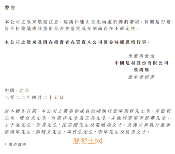 25日,中國建材(03323)公布,公司的附屬公司祁連山(600720.SH)已公告其正在籌劃重組事項,,該事項若得實施,將涉及祁連山發行股份,且可能構成祁連山的重大資產重組。