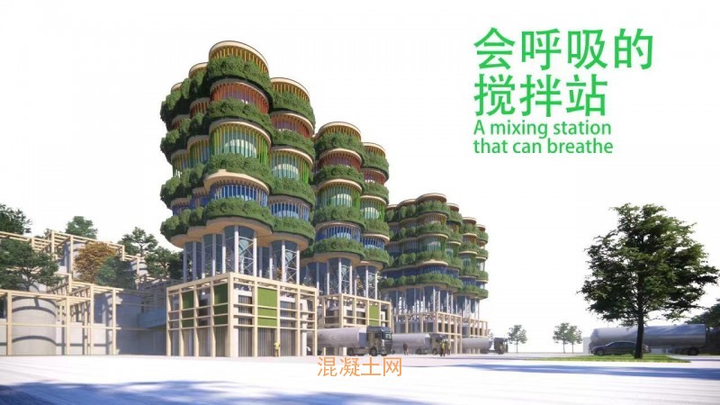 在設計師聶大為眼中,現代混凝土攪拌站是在滿足高效工藝流程的前提下,能有“智能綠色穿戴式”的空間創新。他名為“綠·砼”的作品中,混凝土攪拌站綠感十足。