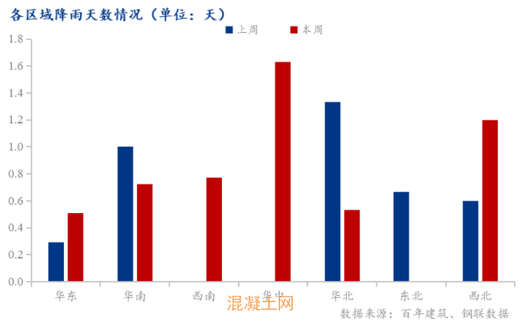 本周國內145個城市降雨天數平均為0.8天,較上周提升0.4天,其中西南、華中、西北地區降溫后又迎來降雨,華南、華北、東北雨水天氣雖有減少,但混凝土發運量也并未有較為明顯的提升。九月到來,各地季節性因素影響逐漸退出,需求矛盾再次凸顯。