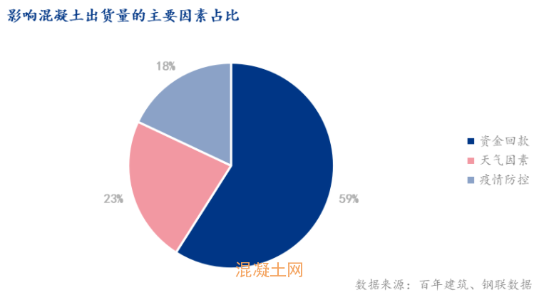 本周調研的混凝土企業反饋較多的問題跟上周基本相同,主要以下3點:資金回款情況依舊是主要難題,占比為59%,市場資金情況無明顯好轉,企業經營壓力繼續增加;23%為天氣因素影響,南方多地高溫消退但又臨臺風、雨水登場,短期影響較為明顯;18%為疫情防控等相關的因素,目前國內仍有較多的中高風險地區,疫情防控形勢仍然較為緊張。