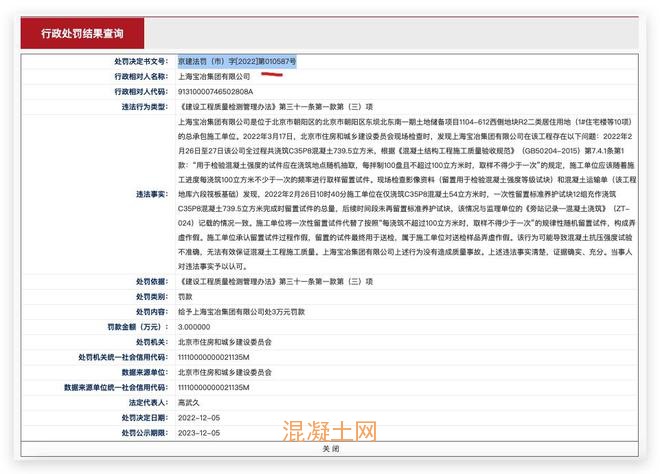 從北京市住房和城鄉(xiāng)建設(shè)委員會(huì)官網(wǎng)獲悉,北京市住房和城鄉(xiāng)建設(shè)委員會(huì)近期發(fā)布的處罰決定書文號(hào)“京建法罰(市)字[2022]第010587號(hào)”顯示,上海寶冶集團(tuán)有限公司作為施工單位承認(rèn)留置試件過程作假,留置的試件最終用于送檢,屬于施工單位對(duì)送檢樣品弄虛作假。該行為可能導(dǎo)致混凝土抗壓強(qiáng)度試驗(yàn)不準(zhǔn)確,無法有效保證混凝土工程施工質(zhì)量,上海寶冶集團(tuán)有限公司上述行為沒有造成質(zhì)量事故,違反《建設(shè)工程質(zhì)量檢測管理辦法》第三十一條第一款第(三)項(xiàng),被罰3萬元。