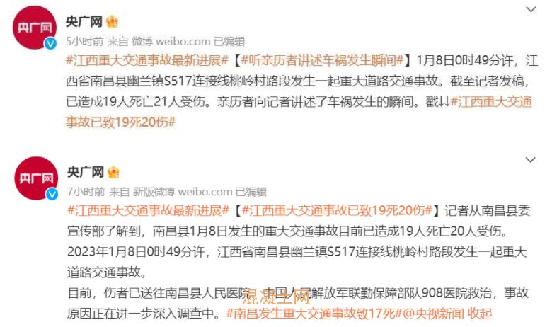 1月8日凌晨,江西南昌縣發生一起重大交通事故,截止1月9日16時,已造成19人死亡21人受傷。當地居民透露,因逝者家屬需早晨5點前到殯儀館排隊拿號,故村民于凌晨出殯,后被貨車撞上送行隊伍造成死傷。