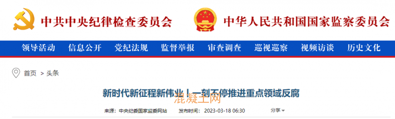 3月18日,中央紀委監委網站發布《新時代新征程新偉業丨一刻不停推進重點領域反腐》一文。提出: