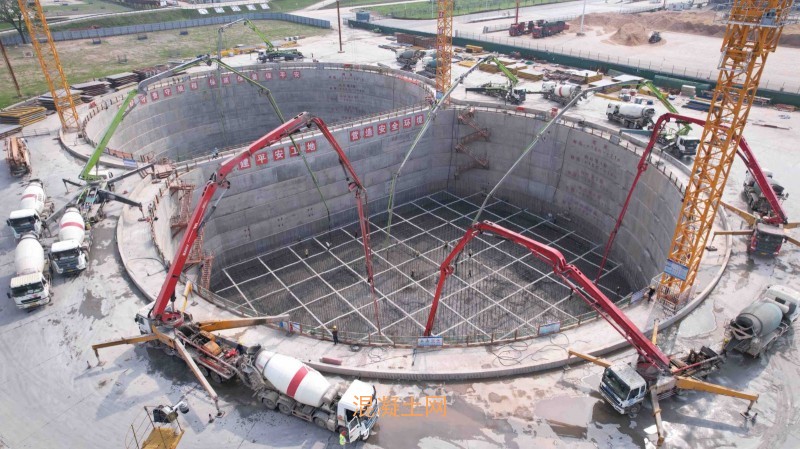 北錨碇填芯施工共分為8次澆筑完成,本次為第5次澆筑,且為目前澆筑量最大的一次,共計澆筑混凝土約15000立方米,采用C20混凝土一次性澆筑完成,相當于填滿6個標準游泳池,同時也創(chuàng)造了46小時完成約15000立方米混凝土澆筑速度,打破了燕磯長江大橋項目混凝土連續(xù)澆筑的紀錄。施工現場6臺天泵源源不斷地將混凝土注入北錨碇后倉“鋼鐵叢林”內。