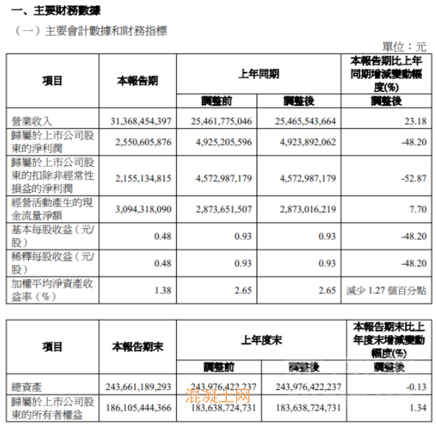 4月26日海螺水泥發布2023年第一季度報告。報告顯示,一季度海螺水泥實現營業收入313.68億元,同比增長23.18%;凈利潤25.51億元,同比下降48.2%。報告期內,主要由于銷售價格同比下降,導致利潤同比減少。