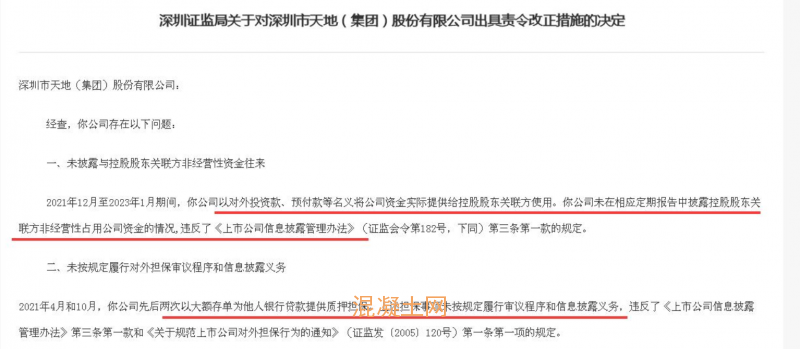 近日,深圳證監局發布了《深圳證監局關于對深圳市天地(集團)股份有限公司出具責令改正措施的決定》,直指深圳市天地(集團)股份有限公司(簡稱深天地A)存在多個違規行為。