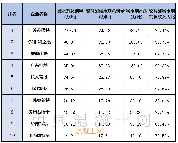 2022年中國混凝土外加劑企業(yè)綜合十強(qiáng)介紹