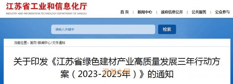 日前,江蘇省工業和信息化廳、財政廳、生態環境廳、住房和城鄉建設廳、市場監督管理局聯合發布《江蘇省綠色建材產業高質量發展三年行動方案(2023-2025年)》的通知。
