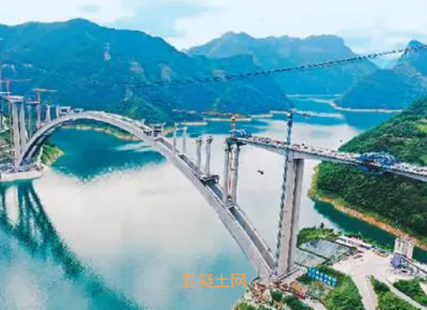 混凝土拱橋跨徑增長很慢,自1980年前南斯拉夫建成跨徑390米的KRK橋至2016年我國建成跨徑445米的世界最大跨徑的滬昆高鐵北盤江特大橋,歷時36年,跨徑僅增長55米,年均增長約1.5米。天峨龍灘特大橋建成后,其跨徑將比世界紀錄提高155米,相當于世界混凝土拱橋跨徑約100年的增長量。