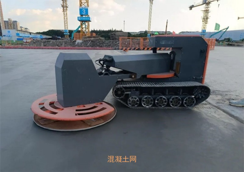 混凝土地面初凝后,履帶式抹平機器人閃亮登場,對地面進(jìn)行提漿、收面施工作業(yè),該機器回轉(zhuǎn)機臂采用伺服電機驅(qū)動,實現(xiàn)大范圍擺臂作業(yè),通過抹盤自調(diào)平機構(gòu),進(jìn)一步確保高精度施工。收光收面均勻高效,施工效率高,施工效率能達(dá)到200-400㎡/h。